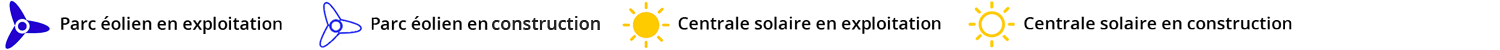 MW : Mégawatt | Nombre de personnes alimentées : en considérant 2 223 kWh/personne/an ( chauffage compris) – Source : data.gouv.fr | Tonnes de CO2 évitées : 489 g CO2/kWh évités pour l’éolien et le solaire en comparaison avec le mix énergétique européen – Source : RTE